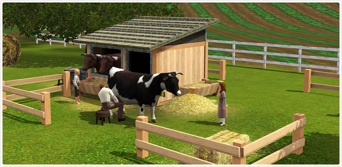 Farm Fresh Folk Set with the Milkin' It Dairy Corral and your problems are solved! In addition to cows (YES, COWS!), you'll get a whole new set of pioneer-inspired clothing and home decor to help you create the perfect farm! Your Sims are one step closer to self-sufficient living...