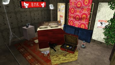 Set includes: A suitcase victrola, Some 78s, vintage photo album, photo backdrop, tripod lamps, vintage book with 13 styles and old metal cabinet with 13 slots.