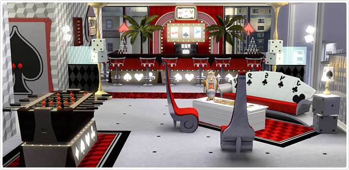 Reminiscent of the casinos from the land of excess, this set is for Sims that crave a décor that matches their fast love for Lady Luck, and games of chance.