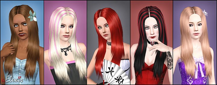 Lithium Kiss" - Silky Hairstyle for Female Sims (Teen to Elder) by Elexis